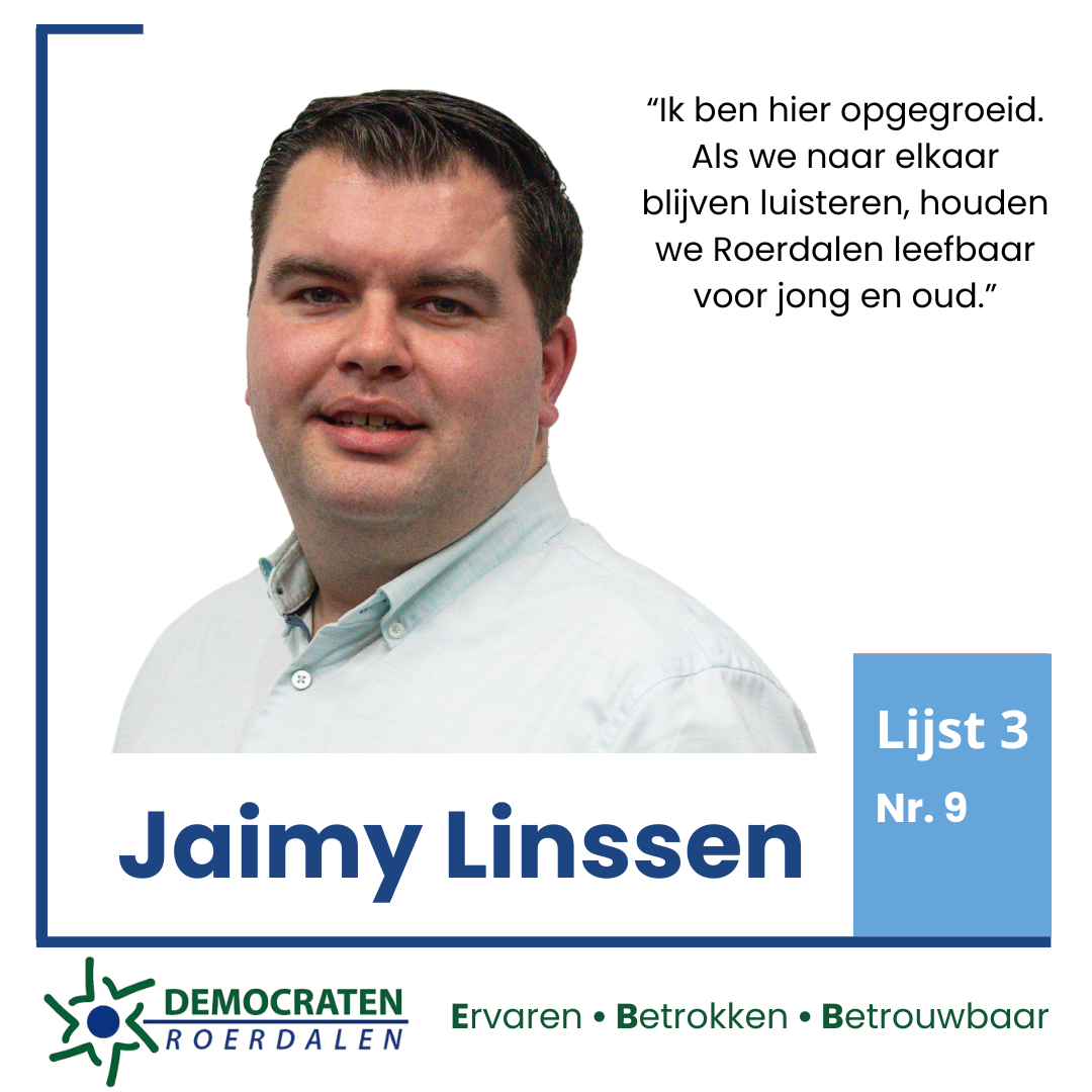 Jaimy is al jaren actief binnen de vereniging en vervulde acht jaar de rol van vorst. Ook buiten de vastelaovend zet hij zich in voor Berg: als leider bij Jong Nederland en als betrokken organisator binnen het lokale verenigingsleven. In het dagelijks leven werkt hij bij Dentsply Sirona in Sevenum.
